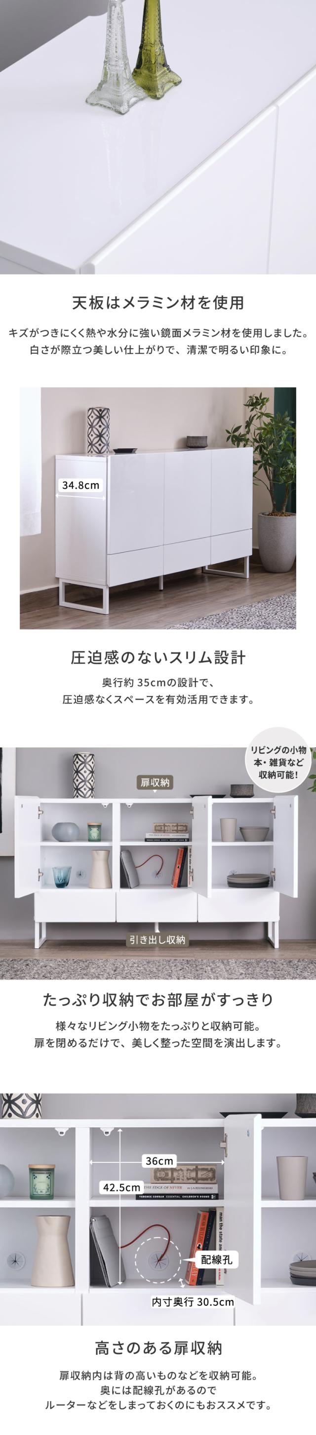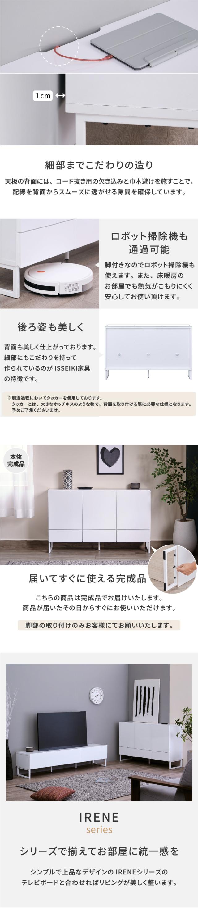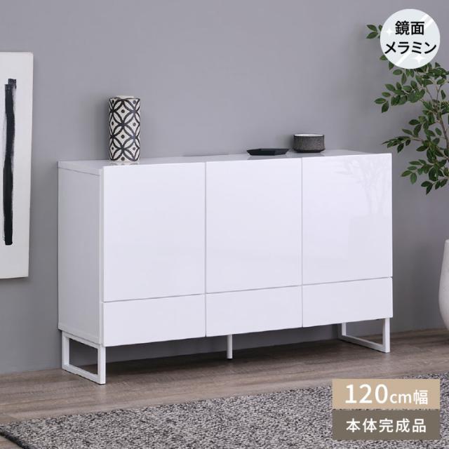 サイドボード 収納家具 リビング収納 A4ファイル収納 幅120 ローボード 引出し 扉 配線 可動棚 鏡面 メラミン ホワイト 白 IRENE SIDE BOARD ISSEIKI