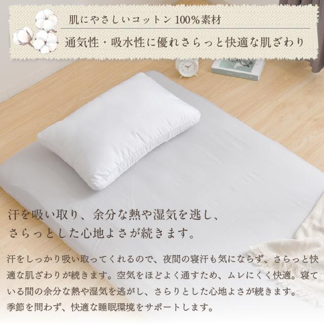 軽やかで通気性抜群、汗をすっと吸う心安らぐ天然素材の綿100%カバーでおやすみください。