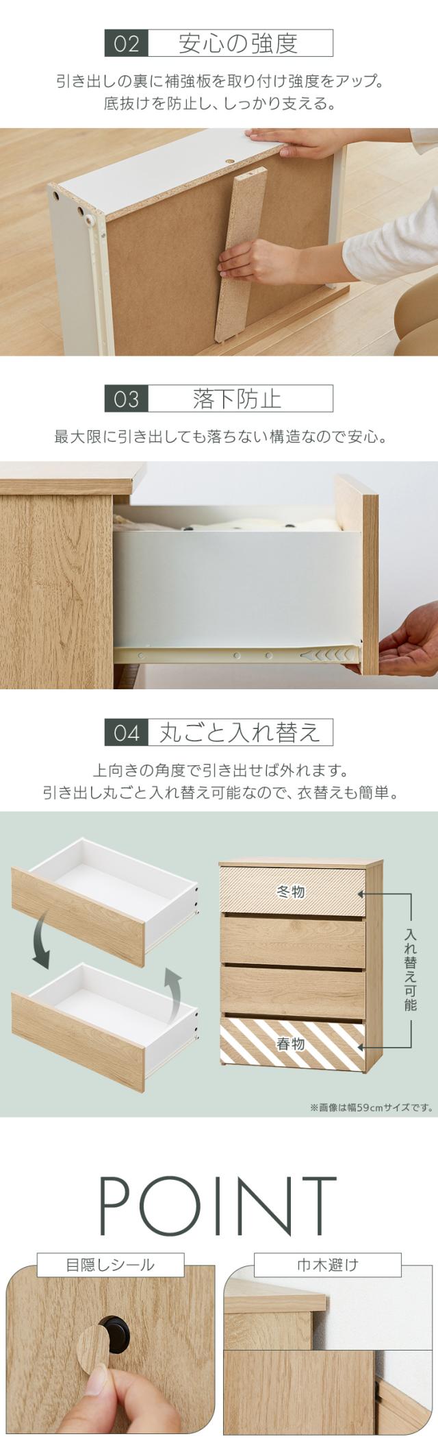 引き出しを丸ごと入れ替え可能なので、衣替えも簡単。
