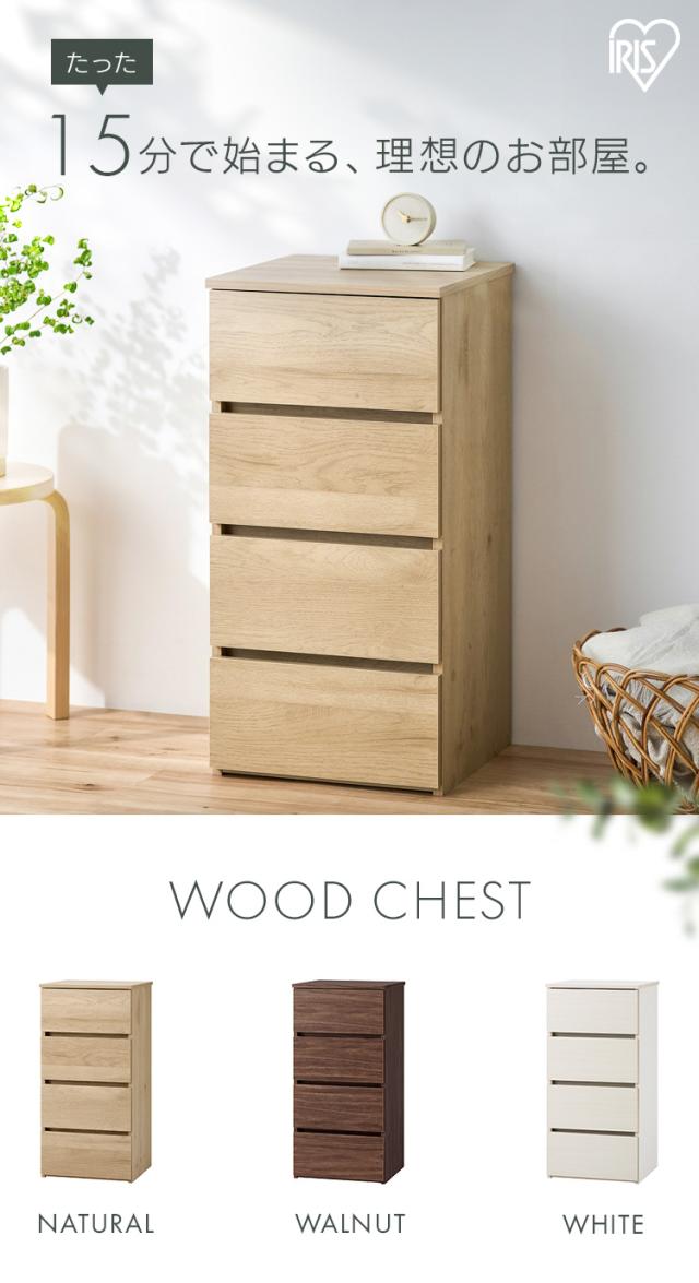 (検索用:チェスト 4段 タンス 大容量 収納 アイリスオーヤマ ローチェスト 衣装ケース 組み立て簡単 工具不要 引き出し 開閉スムーズ 北欧 おしゃれ シンプル 衣類 服 収納ケース 衣類収納ケース 組立簡単ウッドチェスト 4967576801577 4967576801621 4967576801638)