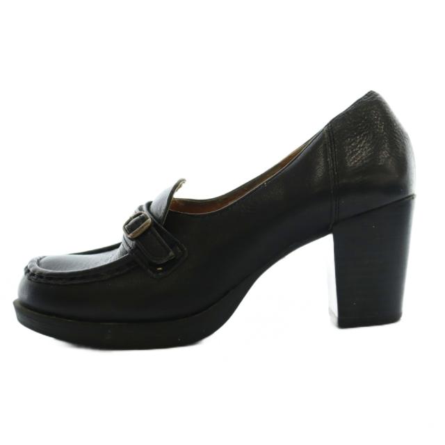 【中古】あしながおじさん ローファー ヒール 22.5cm 黒 ブラック /SS ■OS レディース