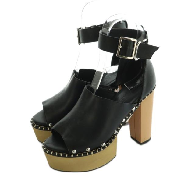 【中古】アンビー ENVYM サンダル 厚底 フェイクレザー プラットフォーム チャンキーヒール 23.5cm 黒 レディース