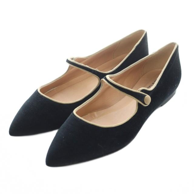 【中古】ステイタス STATUS 24AW ベロアストラップシューズ パンプス ポインテッドトゥ フラット 38 25cm 黒