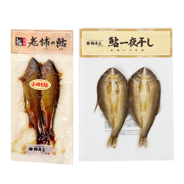 メール便対応 鵜舞屋 老舗の鮎詰合せ 子持ち鮎すがた煮 鮎一夜干し 佃煮 鮎 岐阜県産 甘露煮 干物 惣菜 お取り寄せ 詰め合わせ セット 実用的 常温 日持ち 送料無料 おつまみ ご飯のお供 うまいや 送料無料 UMSA-2