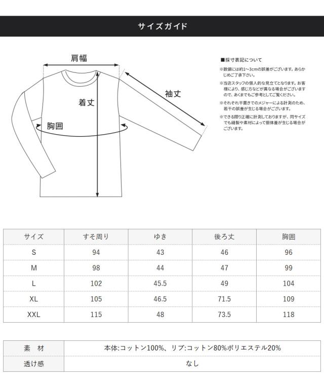 [素材]:本体:コットン100%、リブ:コットン80%ポリエステル20%