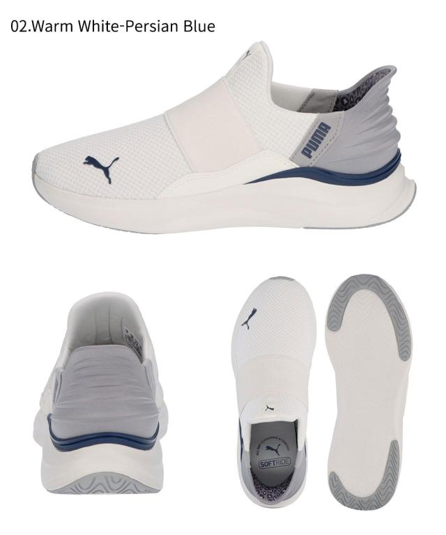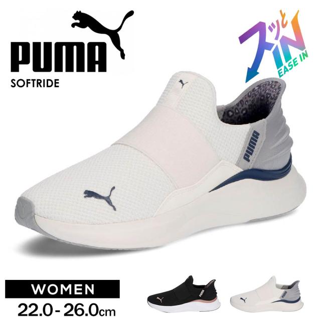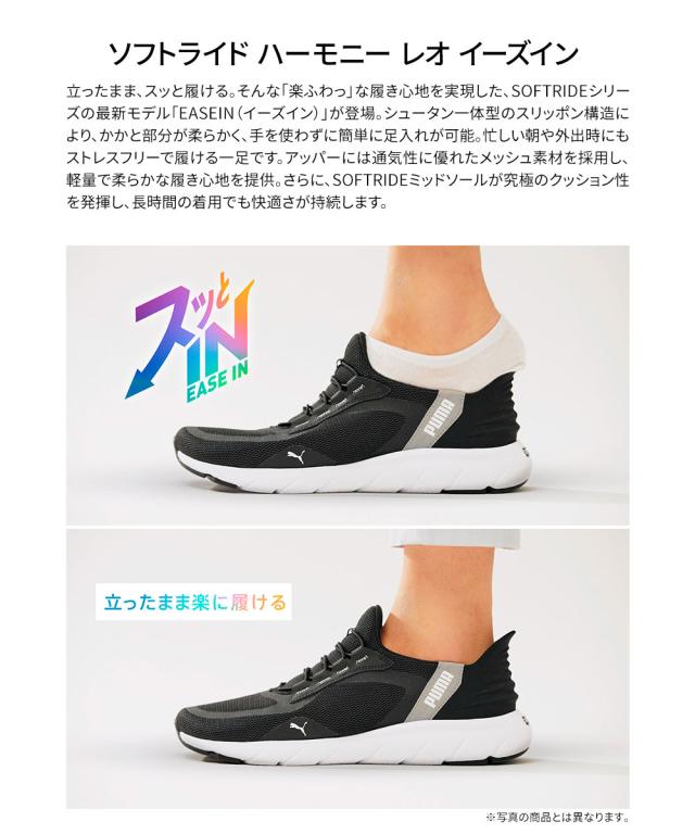 プーマ ランニングシューズ イーズイン スリッポン レディース ウォーキング スニーカー 運動靴 女性用 手を使わずに履ける ハンズフリー機能 ブラック 黒 ホワイト 白 puma SOFTRIDE ハーモニー レオ EASE IN 312809