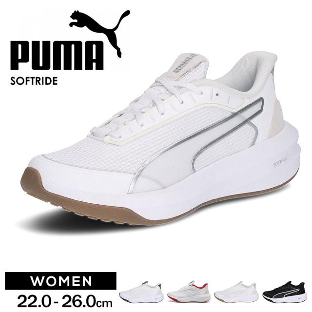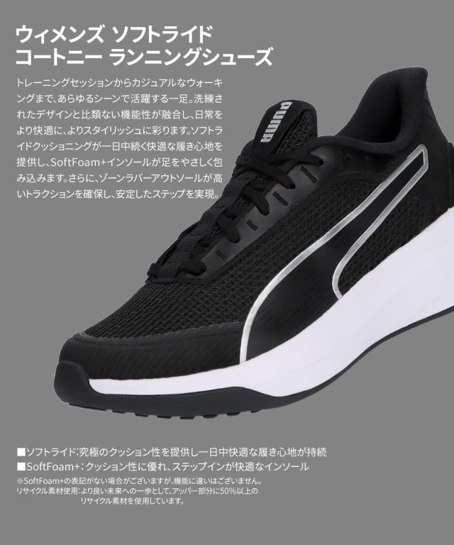 プーマ ランニングシューズ レディース ウォーキングシューズ トレーニングシューズ 運動靴 スニーカー 女性用 厚底 ローカット スポーツ PUMA ソフトライド コートニー 黒 ブラック 白 ホワイト 312037