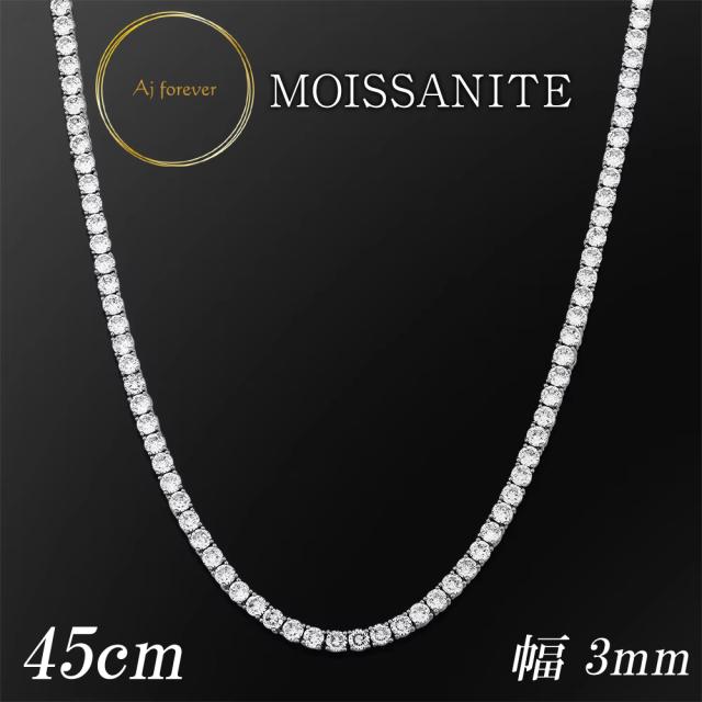 モアサナイト テニスネックレス 3mm幅 45cm レディース ダイヤモンド の2,5倍の輝き 金属アレルギー対応 コーティング プラチナ 仕上げ D VVS ペンダント アクセサリー スキンジュエリー テニスチェーンネックレス シルバー925 プレゼント 女性 誕生日 彼女