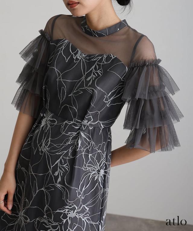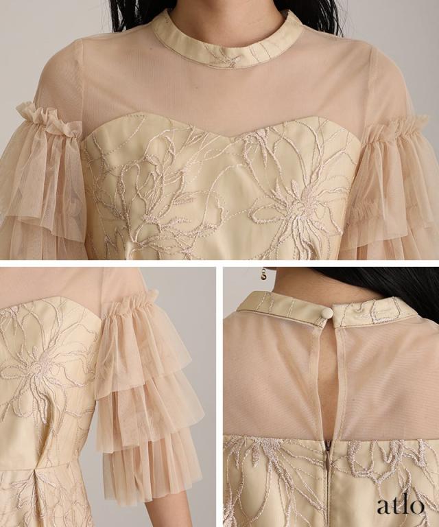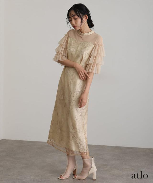 ティアードスリーブ刺繍ドレス【482251620】10代・20代・30代・40代・50代・ドレスワンピ・フォーマルワンピ・パンツドレス・服装・ワンピース・ドレスカジュアル・ブランド・七分袖・長袖・ロング・膝丈・薄手・厚手・無地・刺繍・脚長効果・伸縮性・キレイめ・着やせ・体型カバー・スタイルアップ・レース・リボン・ドレープ・小さいサイズ・3Lや4L・かっこいい・かわいい・即日発送・送料無料・結婚式・婚活・披露宴・顔合わせ・発表会・演奏会・二次会・同窓会・お呼ばれ・食事会・謝恩会・親族・七五三・お宮参り・冠婚葬祭・弔事・女子会・韓国・デート・入学式・卒業式・入園式・卒園式・ママ・ピアノ・マタニティー・セレモニー・セレブ・パーティー