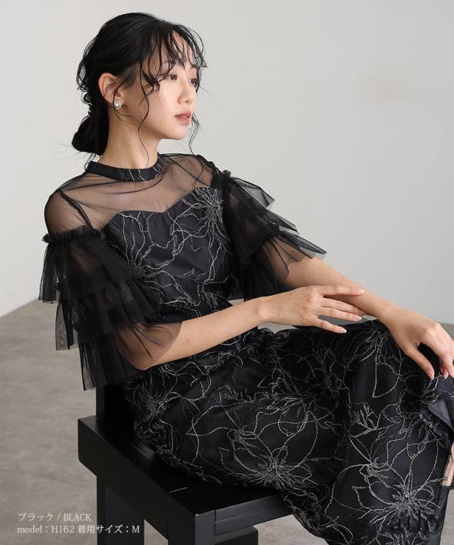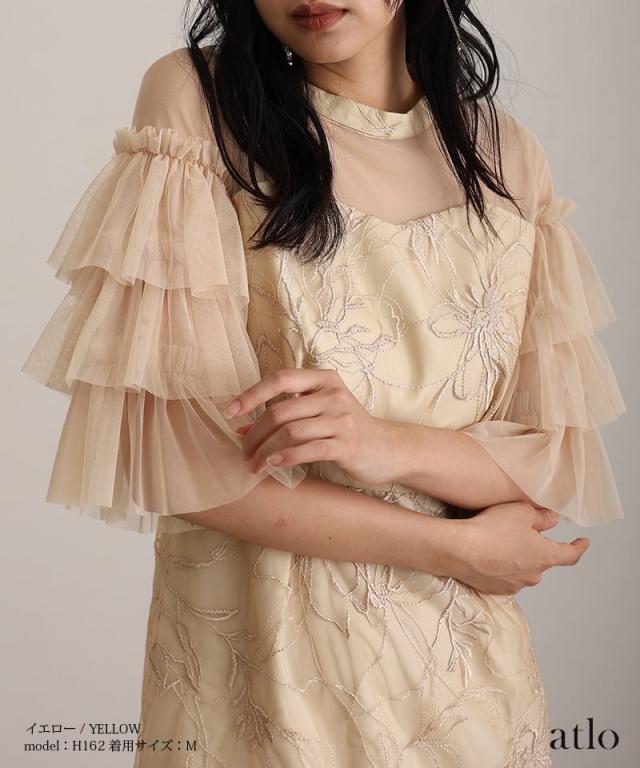 482251620 ティアードスリーブ 刺繍 パーティードレス オケージョン ワンピース 結婚式 大きいサイズ かっこいい ドレス 体型カバー オケージョンドレス 10代 20代 30代 お呼ばれ フォーマル