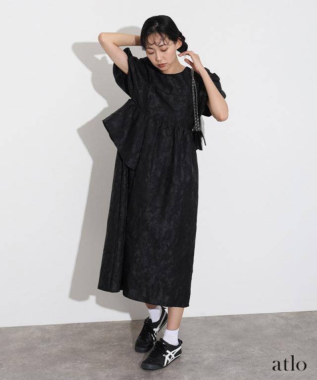 ふんわりとしたボリューム感と、落ち感のあるラインが美しく調和したドレス。