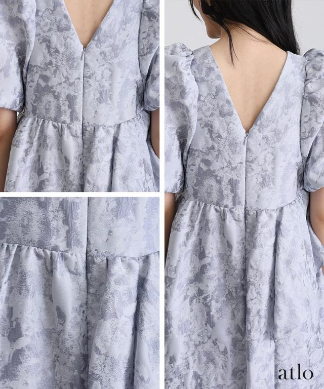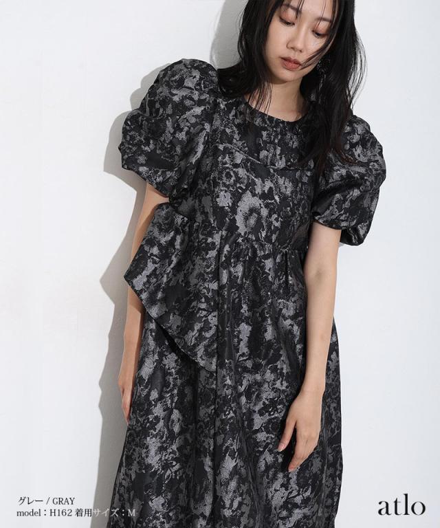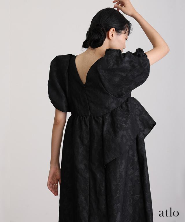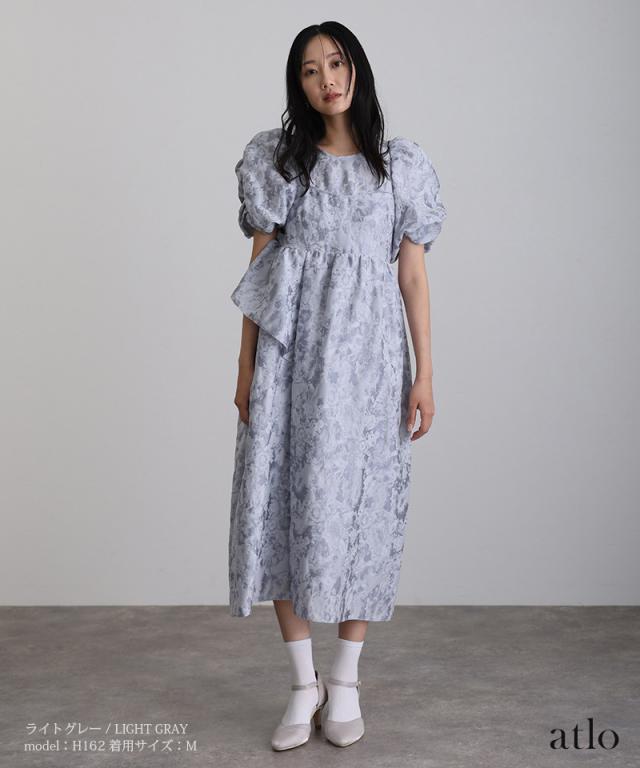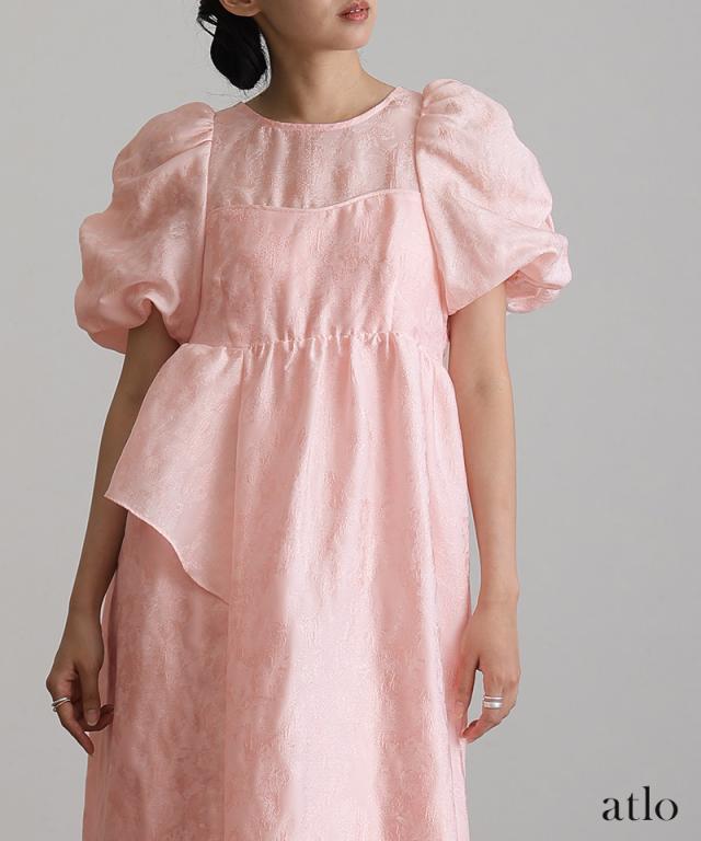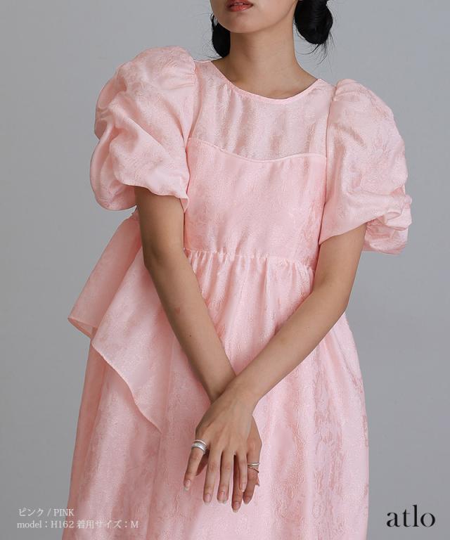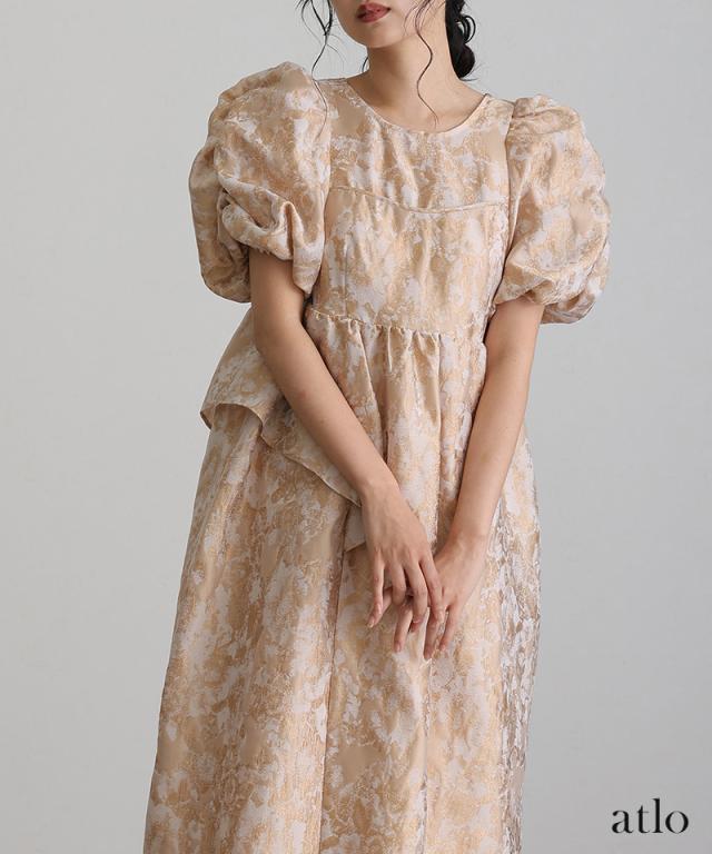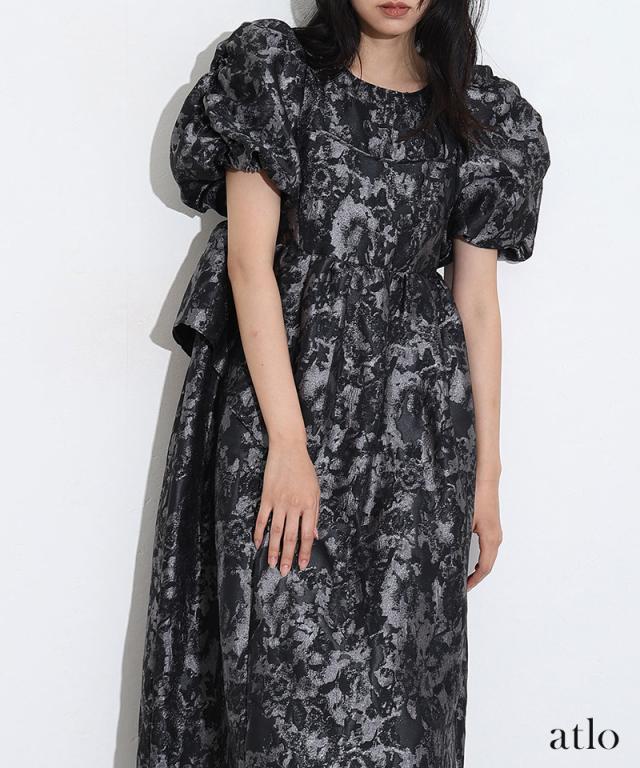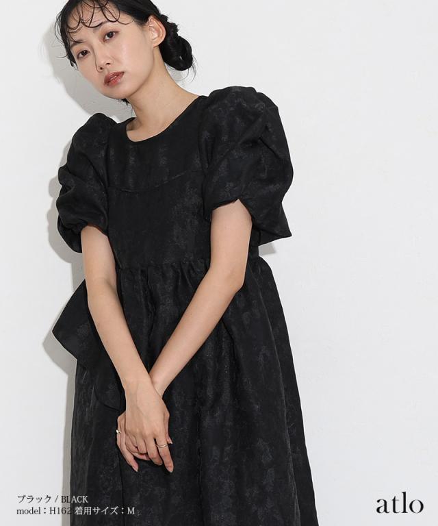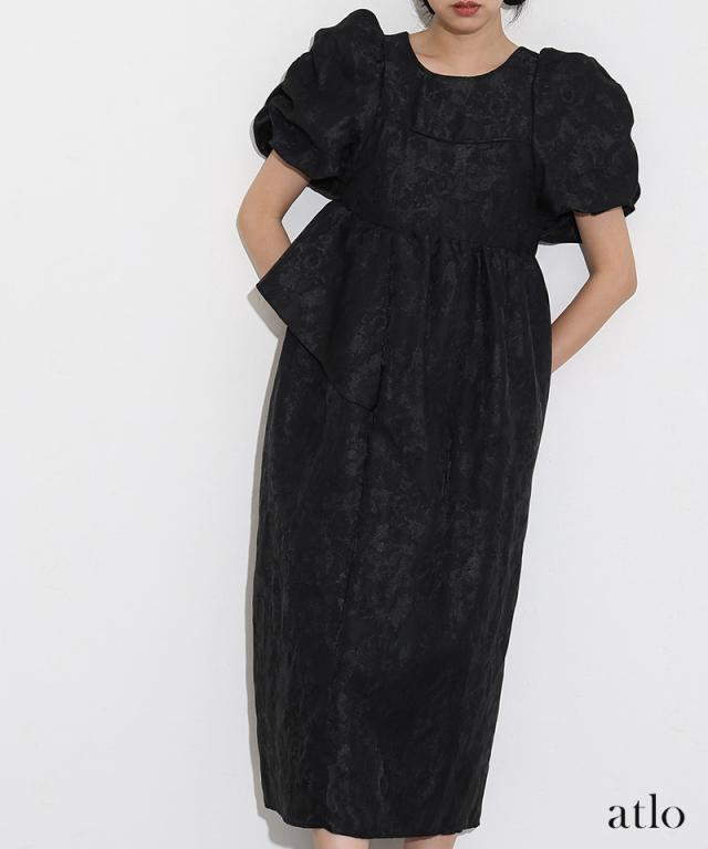 バブルスリーブジャガードドレス【483251878】10代・20代・30代・40代・50代・ドレスワンピ・フォーマルワンピ・パンツドレス・服装・ワンピース・ドレスカジュアル・ブランド・七分袖・長袖・ロング・膝丈・薄手・厚手・無地・刺繍・脚長効果・伸縮性・キレイめ・着やせ・体型カバー・スタイルアップ・レース・リボン・ドレープ・小さいサイズ・3Lや4L・かっこいい・かわいい・即日発送・送料無料・結婚式・婚活・披露宴・顔合わせ・発表会・演奏会・二次会・同窓会・お呼ばれ・食事会・謝恩会・親族・七五三・お宮参り・冠婚葬祭・弔事・女子会・韓国・デート・入学式・卒業式・入園式・卒園式・ママ・ピアノ・マタニティー・セレモニー・セレブ・パーティー