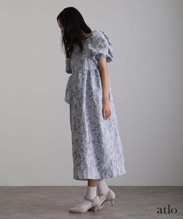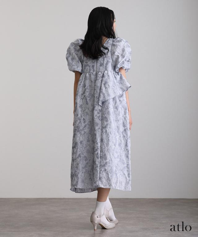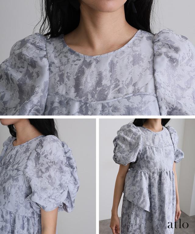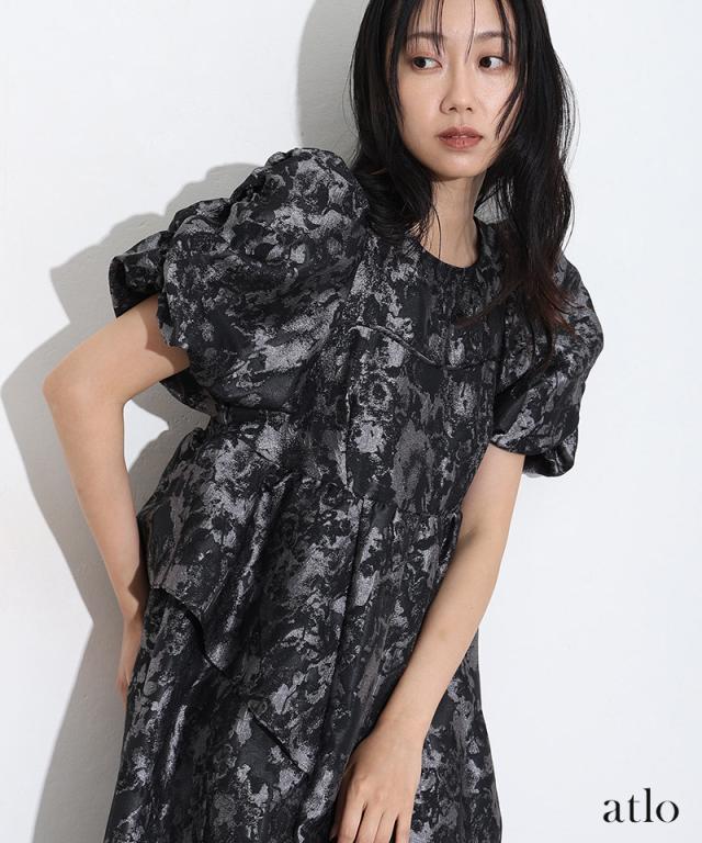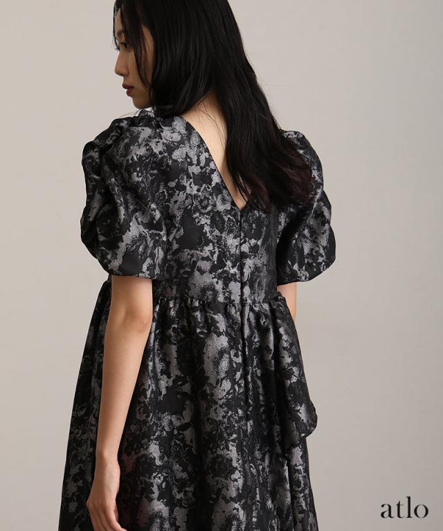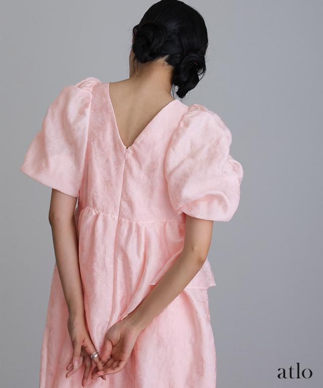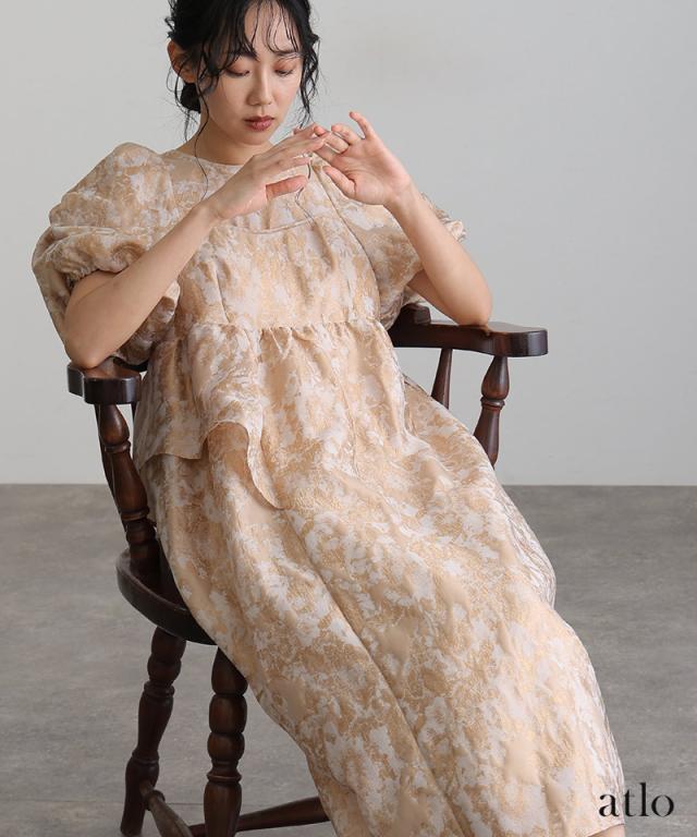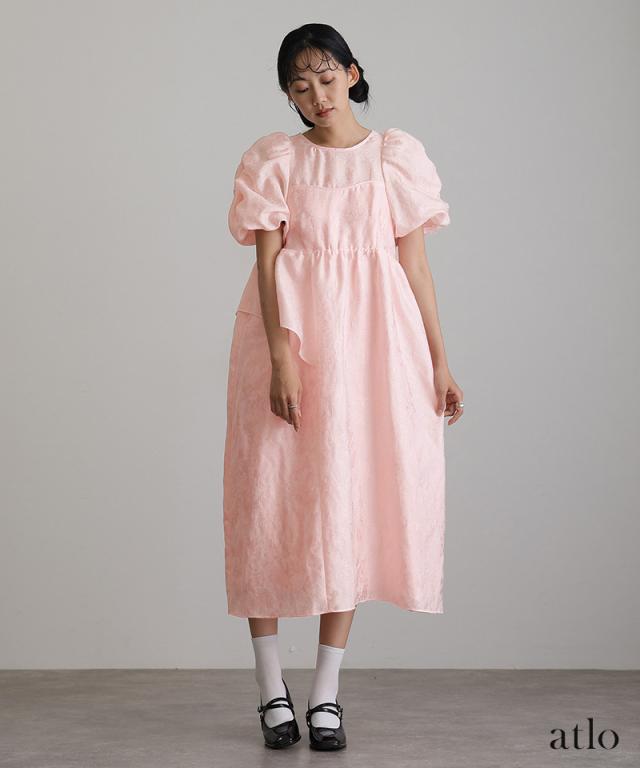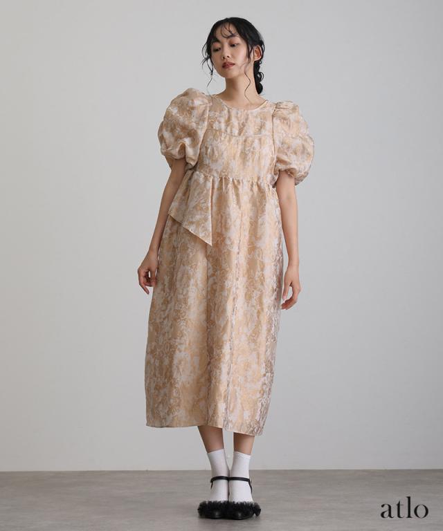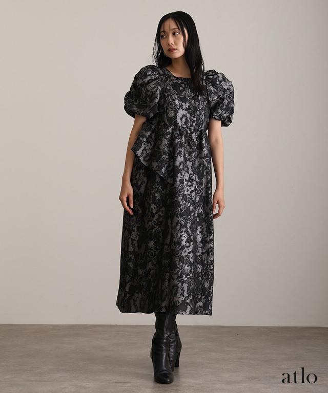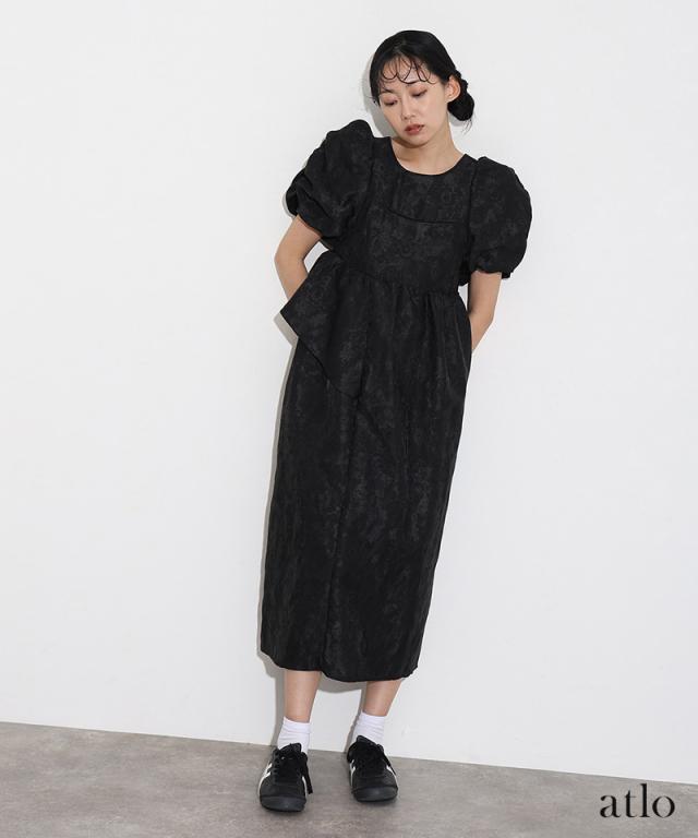 バブルスリーブジャガードドレス【483251878】10代・20代・30代・40代・50代・ドレスワンピ・フォーマルワンピ・パンツドレス・服装・ワンピース・ドレスカジュアル・ブランド・七分袖・長袖・ロング・膝丈・薄手・厚手・無地・刺繍・脚長効果・伸縮性・キレイめ・着やせ・体型カバー・スタイルアップ・レース・リボン・ドレープ・小さいサイズ・3Lや4L・かっこいい・かわいい・即日発送・送料無料・結婚式・婚活・披露宴・顔合わせ・発表会・演奏会・二次会・同窓会・お呼ばれ・食事会・謝恩会・親族・七五三・お宮参り・冠婚葬祭・弔事・女子会・韓国・デート・入学式・卒業式・入園式・卒園式・ママ・ピアノ・マタニティー・セレモニー・セレブ・パーティー