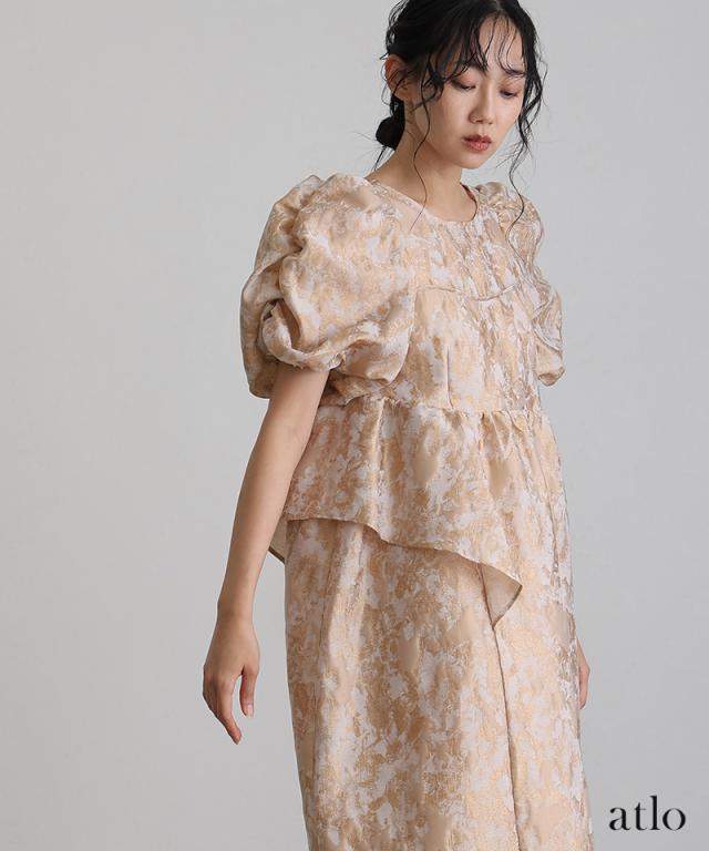 存在感のあるパフスリーブが、気になる二の腕をカバー。