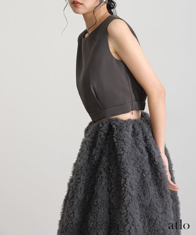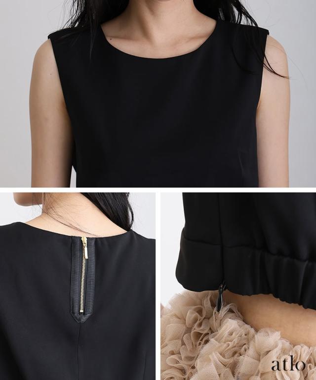 ふわっと広がるチュールスカートが主役のパーティードレス。