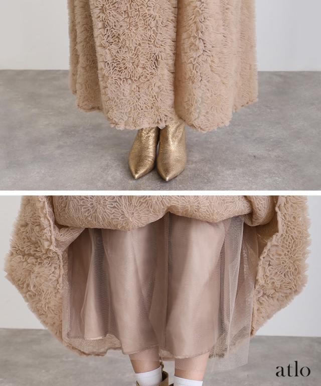 表のふんわりチュールと裏地の間にハリのあるチュールを挟み、しっかりボリュームが出るようにしました。