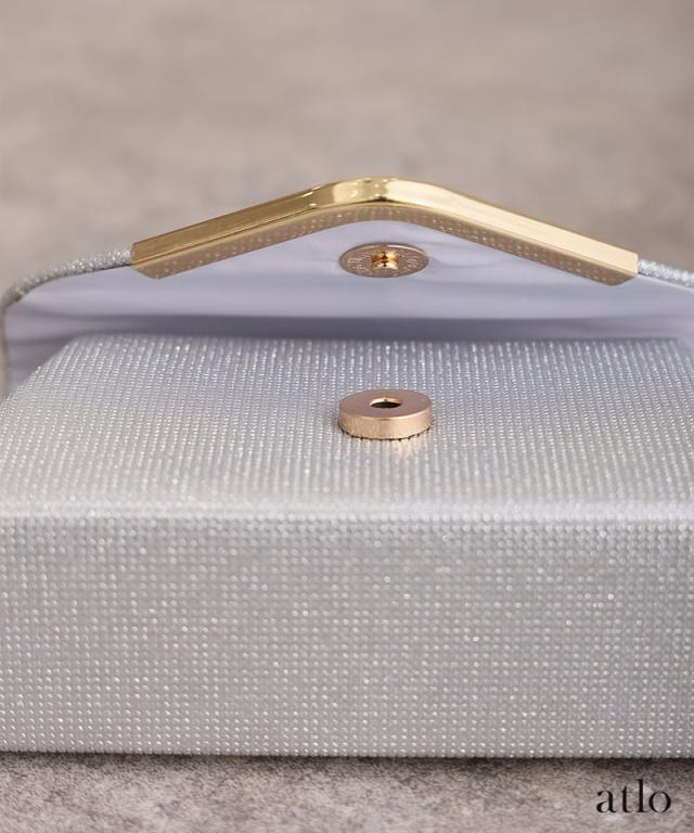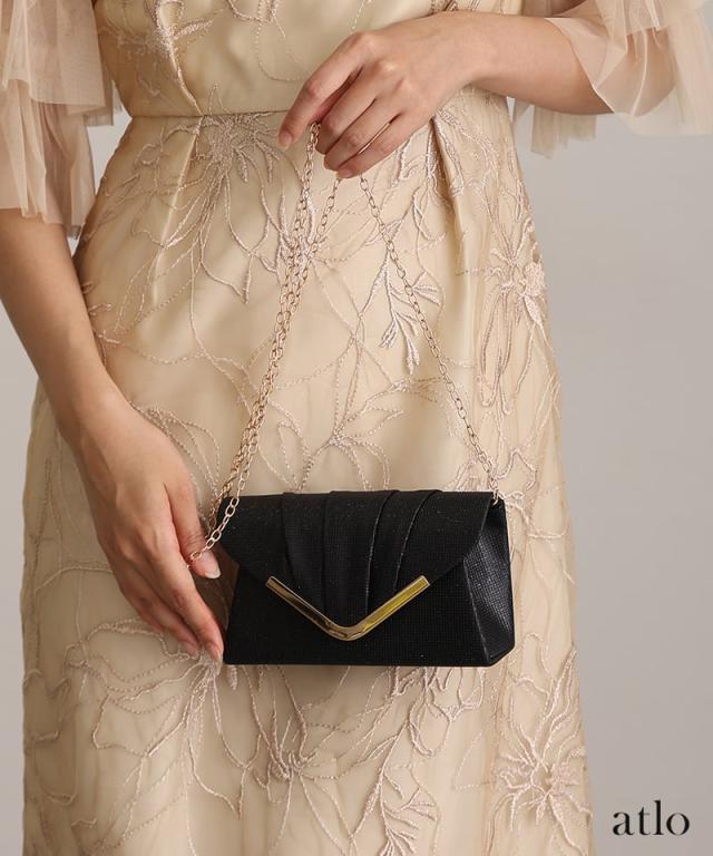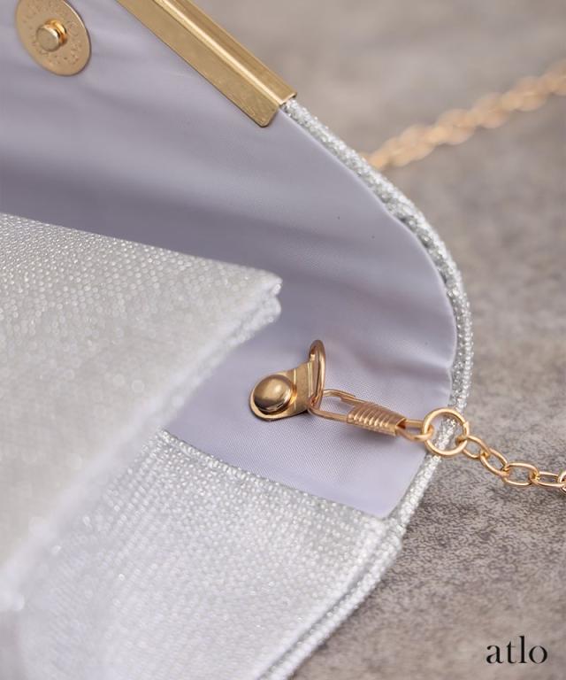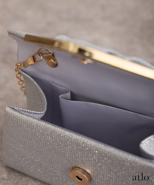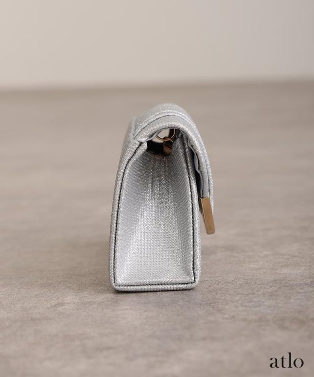 細やかなラメが華やかにきらめき、パーティーやフォーマルシーンに上品な存在感を添えるバッグ。