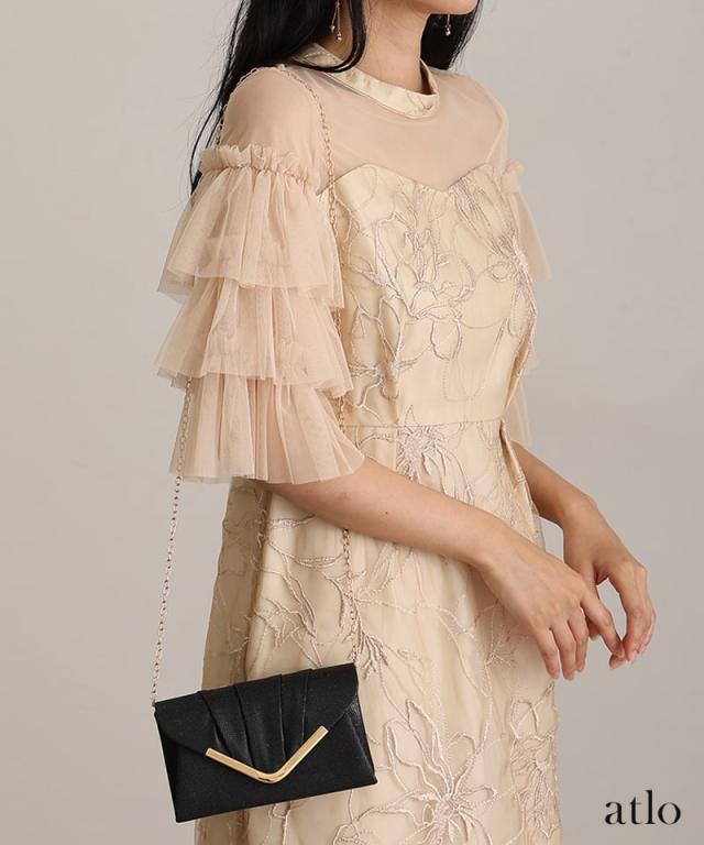 きらめくラメ生地が角度によって美しい光を放ち、ドレススタイルを一層引き立てます。