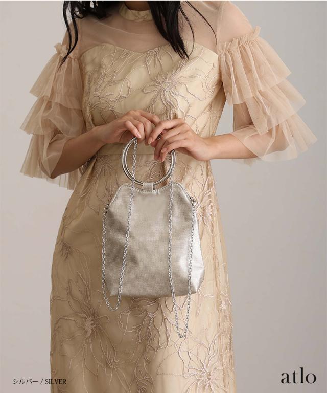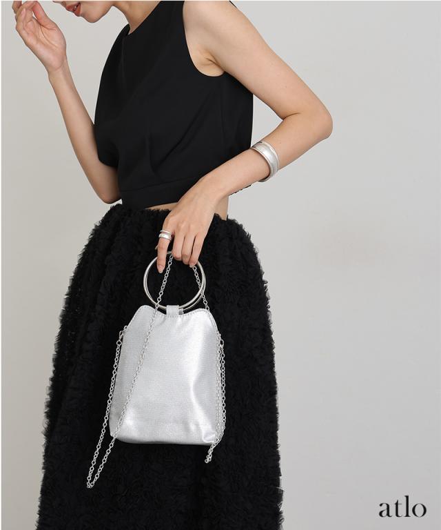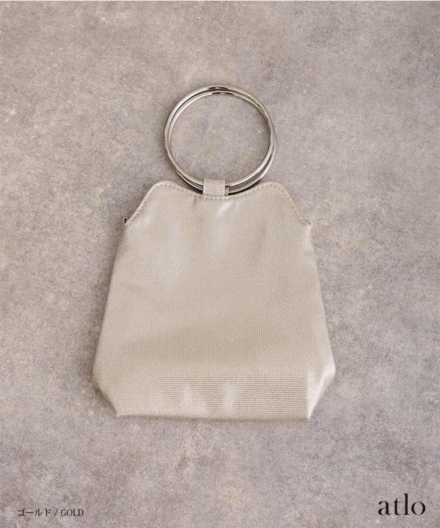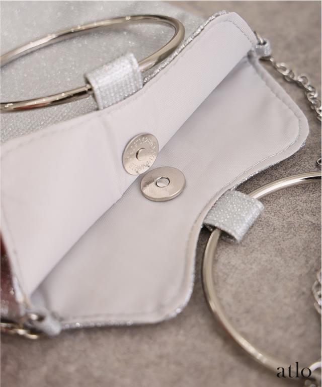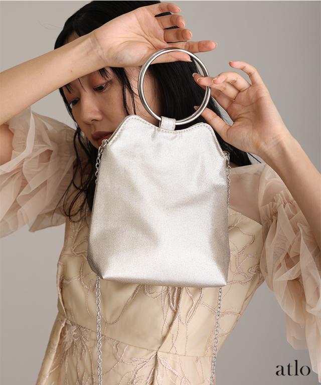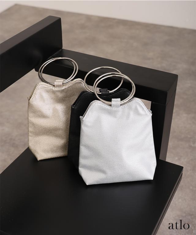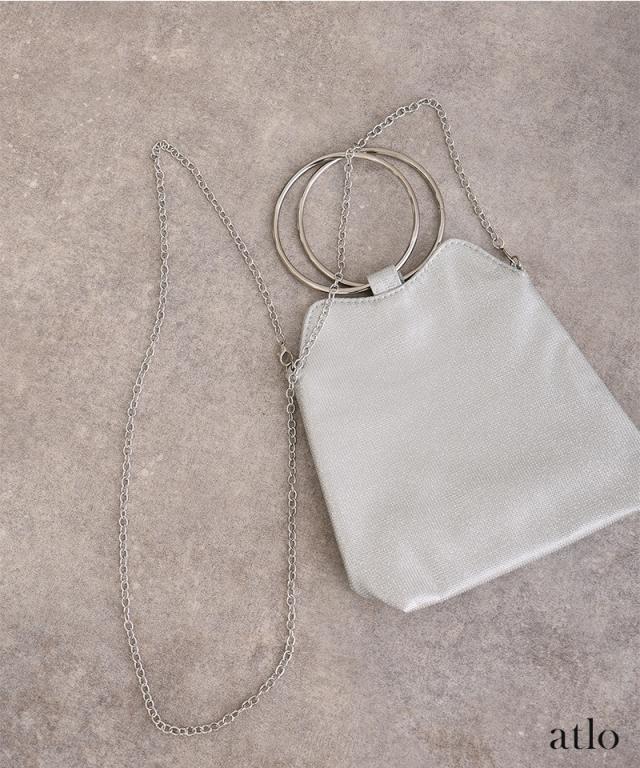 華やかなメタリックのダブルリングが手元を彩る、アクセサリー感覚のパーティーバッグ。
