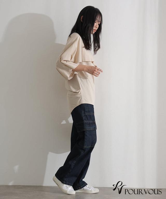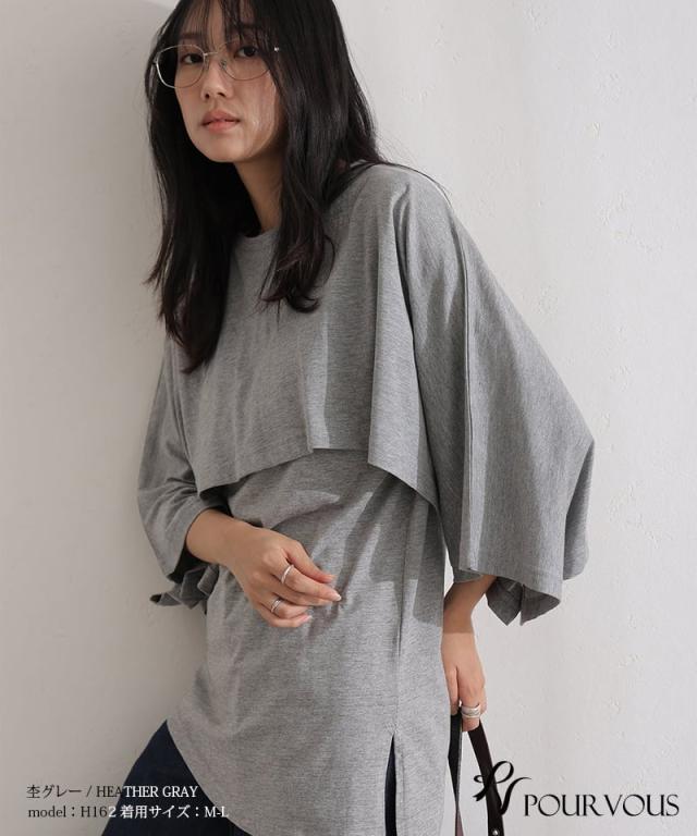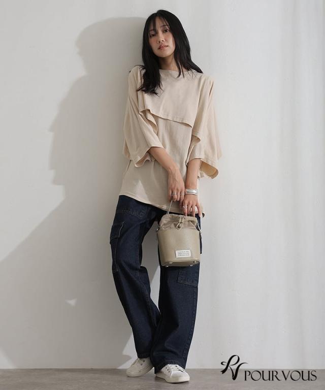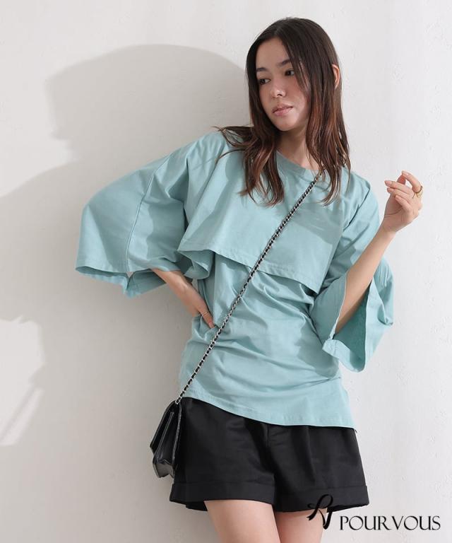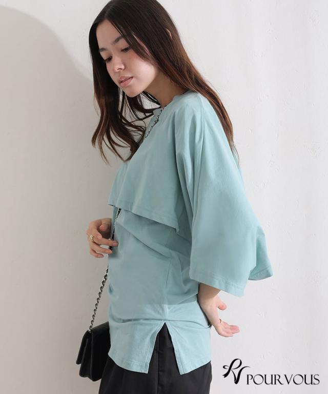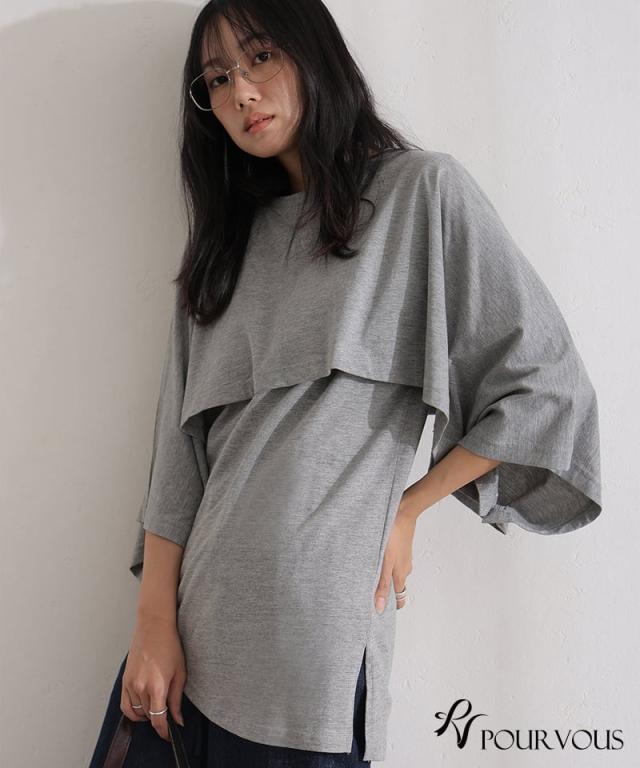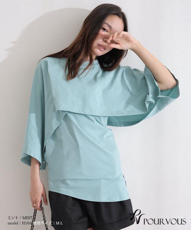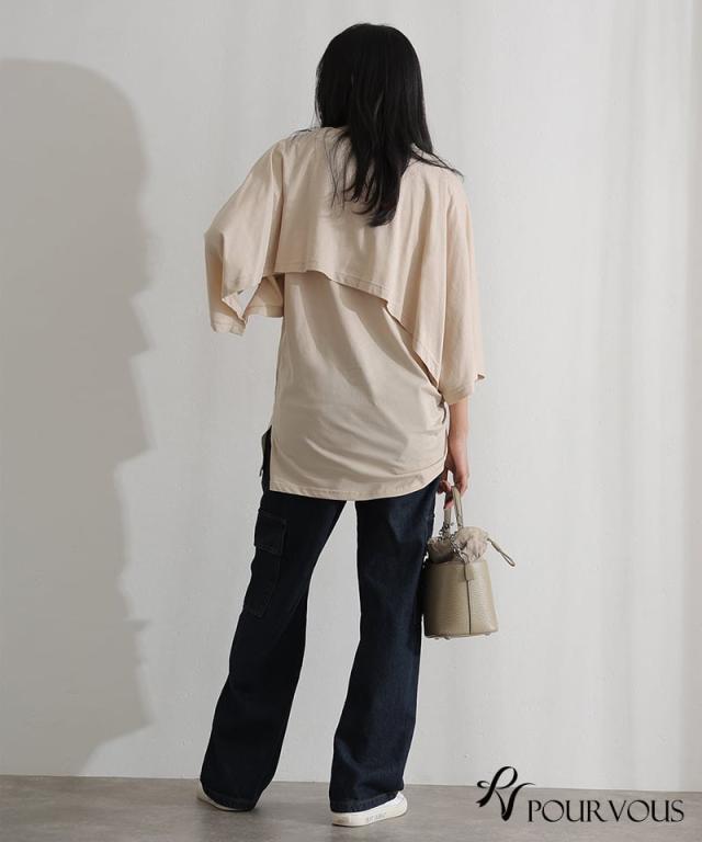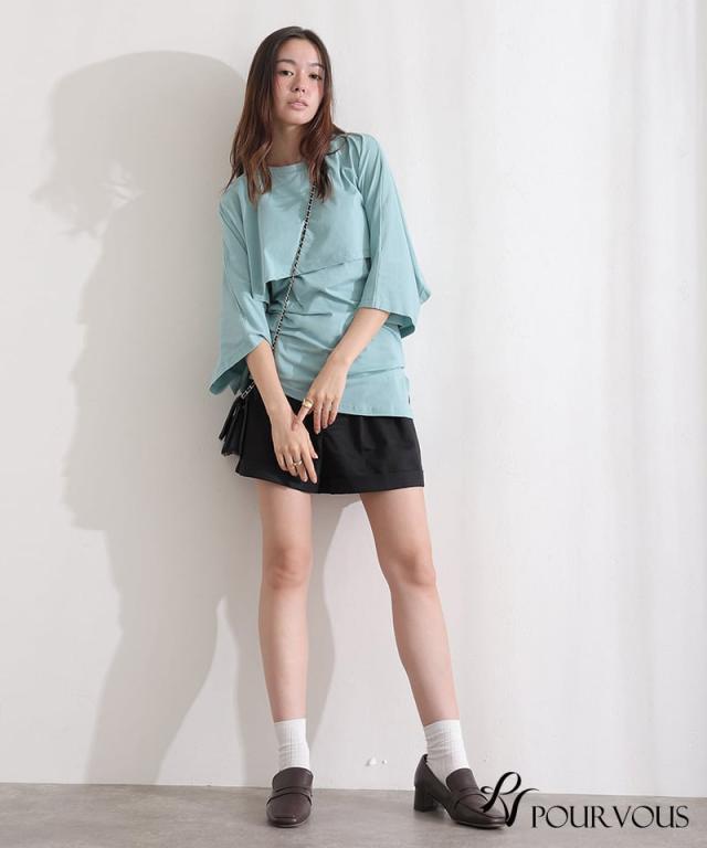 463251626 ケープ セットアップ レイヤード 体型カバー シルエット ミドル丈 デート 着やせ 半端袖 ゆったり スタイルアップ 大人 部屋着 韓国 春夏 30代 40代 デイリー 無地 普段着に お出かけ