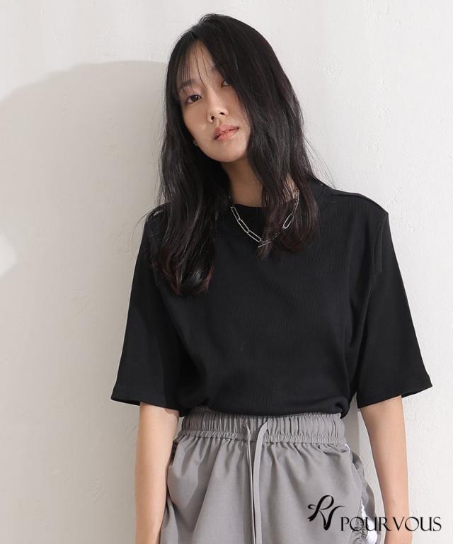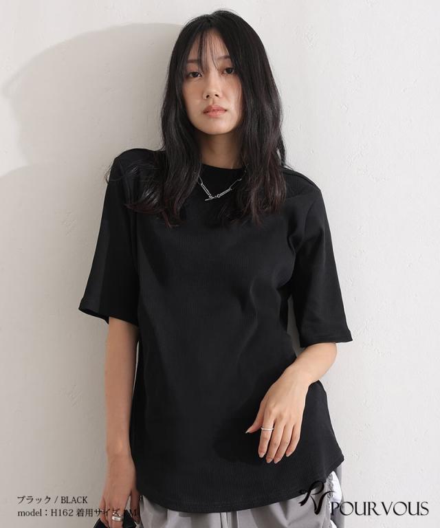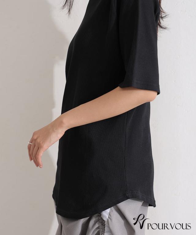471251626 プチハイネック リブ 着回し 夏 サマー 上品 ゆったり 普段着に シンプル お出かけ お出掛け着 春 半袖 五分袖 七分袖 7分袖 ファッション ナチュラル かっこいい 春 大きめ 大きい