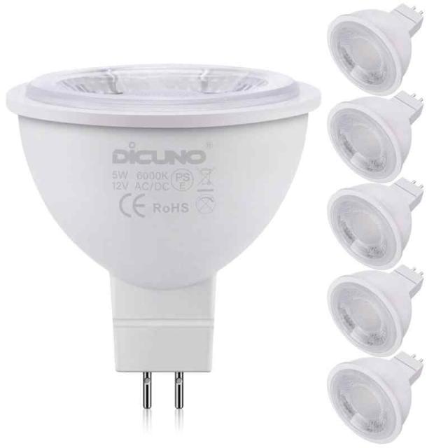 DiCUNO MR16 12V LED電球 GU5.3口金 50W形ハロゲン相当(5W)高輝度500lm COB スポットライト 非調光 6個入 (昼白色)