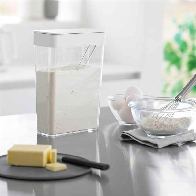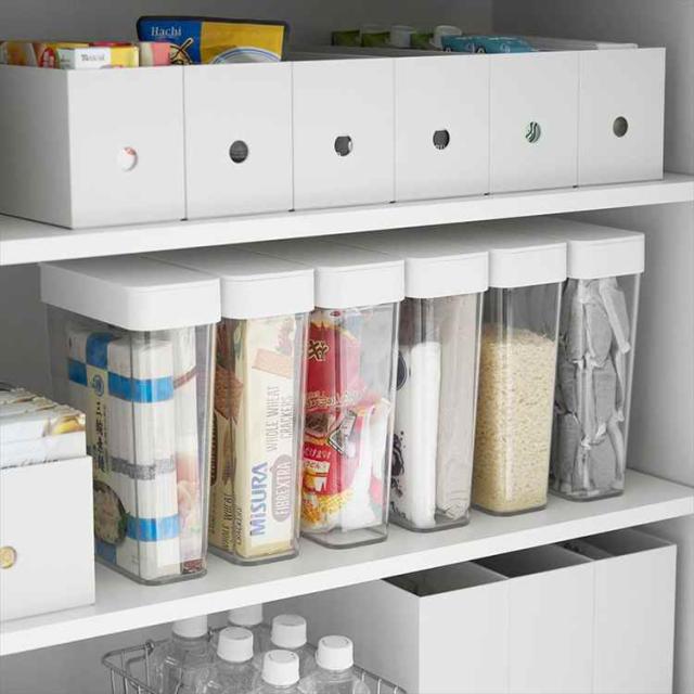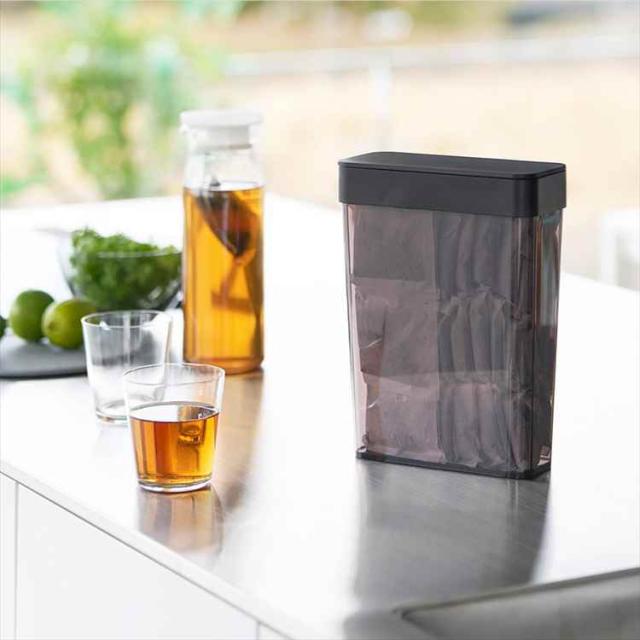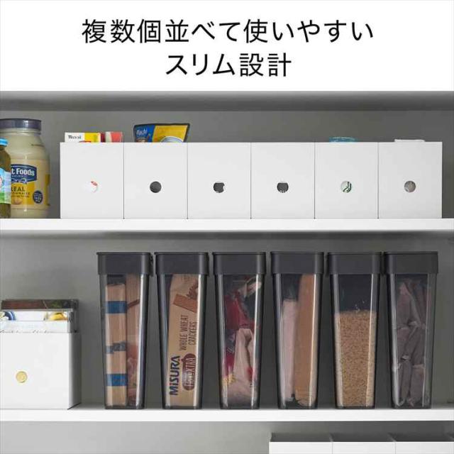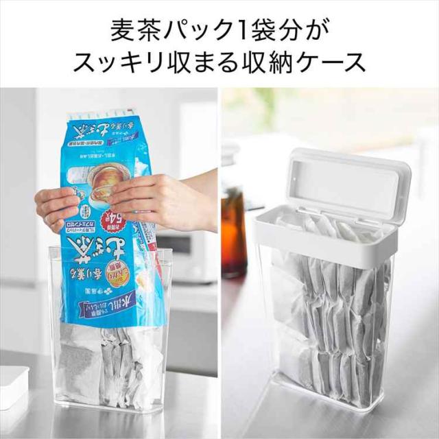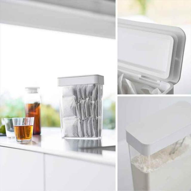 収納に困る麦茶パックが54袋入る、スリムタイプの収納ケースです。パッキン付きなので開封後の袋入り砂糖や塩、乾物なども安心して収納できます。大容量の小麦粉などの移し替えにも便利。開口部が広いのでスムーズ取り出すことができます。パーツはすべて分解して洗えるので、お手入れも簡単。 ※麦茶パックのサイズや形状によっては1袋分すべてを収納できない場合があります。