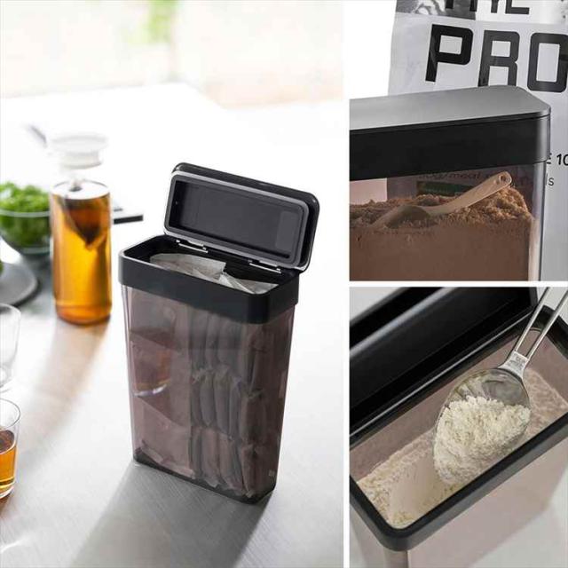 パッキン付きスリム収納ケース 2.3L 山崎実業 タワー tower 公式 10391 10392 ホワイト ブロック 保存容器 密閉容器 ストッカー 透明 クリア シンプル おしゃれ スタイリッシュ ケース プロテイン シリアル グラノーラ 米 粉物 粉末 雑穀 食品 保管 保存 入れ キャニスター