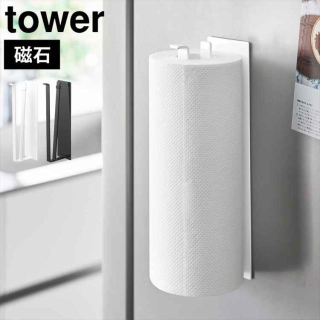 片手でカットマグネットキッチンペーパーホルダー 縦タイプ 山崎実業 タワー tower 10268 10269 ホワイト ブラック 公式 キッチンペーパーホルダー マグネット 片手で切れる 冷蔵庫横 ペーパーホルダー 磁石 簡単 切れる 省スペース 壁面収納 おしゃれ シンプル キッチン