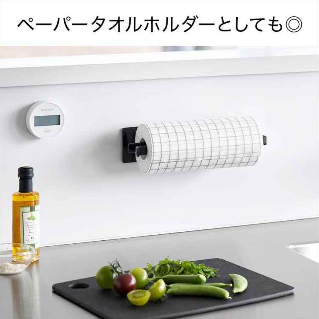 マグネットで簡単取り付け!片手でカットできるキッチンペーパーホルダーです。縦向き、横向きのどちらでも使用可能。差し込むだけのシンプルな構造で使いやすく便利です。シリコーン製のストッパーがキッチンペーパーロールをしっかりキャッチし、スムーズにカットできます。キッチンパネルに設置すれば、野菜の水切りや台拭き、油汚れなどの拭き掃除の際にも便利です。
