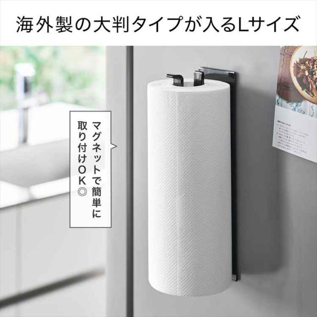 片手でカットマグネットキッチンペーパーホルダー 縦タイプ L 山崎実業 タワー tower 10270 10271 ホワイト ブラック 公式 キッチンペーパーホルダー マグネット 片手で切れる 大判サイズ 海外製 コストコ 対応 冷蔵庫横 ペーパーホルダー 磁石 切れる おしゃれ シンプル