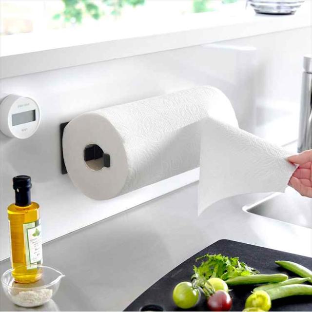 マグネットで簡単取り付け!片手でカットできるLサイズのキッチンペーパーホルダーです。縦向き、横向きのどちらでも使用可能で、海外製の大判タイプにも対応。差し込むだけのシンプルな構造で使いやすく便利です。シリコーン製のストッパーがキッチンペーパーロールをしっかりキャッチし、スムーズにカットできます。キッチンパネルに設置すれば、野菜の水切りや台拭き、油汚れなどの拭き掃除の際にも便利。