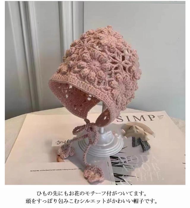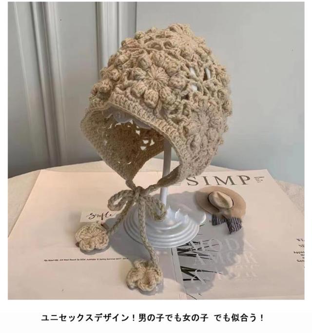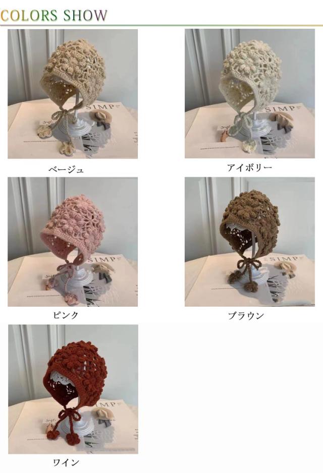 透かし編み ニット ボンネット 帽子 ベビー 女の子 韓国子供服 ニットボンネット ナチュラル キャップ 帽子 日よけ帽子 日除け 紫外線 シンプル ベビーボンネット ベビー帽子 フリーサイズ 0歳 1歳 お祝い ギフト プレゼント ベビー用 新生児 ニューボーン