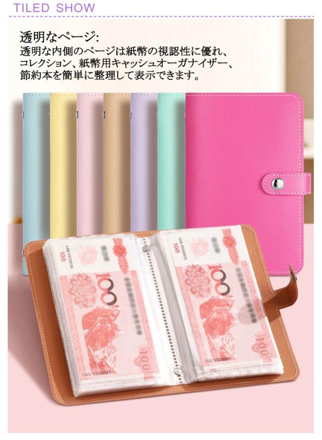 バインダー 貯金箱 貯金封筒 お札 貯金ファイル おしゃれ 100枚収納可能/2冊入 貯金箱 お札 お札 封筒貯金 お金仕分け 貯金封筒 10color 貯金ファイル バインダー お札 貯金箱 お金仕分け 貯金箱 お札 お金の保管小冊子 お金を貯める本 札入れ 集金本