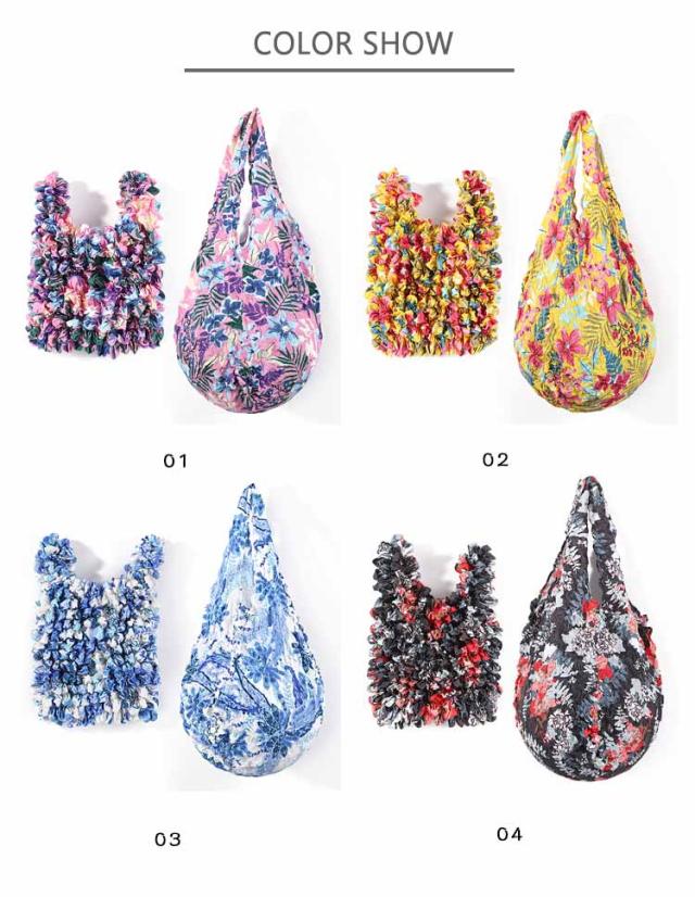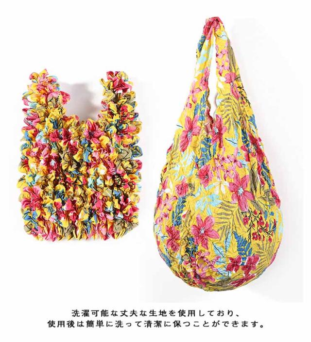 エコバッグ 折り畳み不要 大容量 くしゅくしゅ 伸びるエコバッグ コンパクト 絞り 花柄 トートバッグ ボタニカル プリーツエコバッグ お弁当 ミニバッグ しぼりバッグ 伸縮 畳まない おしゃれ 可愛い 超軽量 買い物バッグ コンビニバッグ 洗濯可