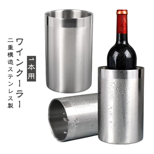 ワインクーラー ステンレス製 二重構造 保冷 宅飲み おしゃれ ワインクーラー アイスペール クリスマス シャンパン ボトルクーラー 氷 シャンパンクーラー ワイン 日本酒 アイスバケット アウトドア 日本酒 バケツ 結婚式 キャンプ 氷不要 1本用 保温