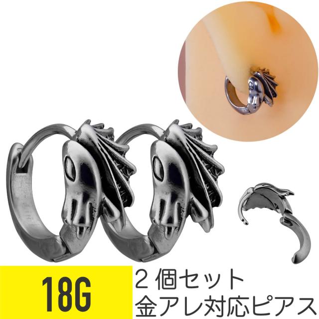2個セット ドラゴン フープ ピアス 18G サージカルステンレス ヘリックス 軟骨ピアス ボディピアス 龍 金属アレルギー 対応 つけっぱなし