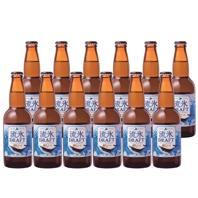 網走 流氷ドラフト 330ml 瓶 12本セット 北海道 ビール 送料無料 北海道 沖縄は送料1000円 クール便は800円加算