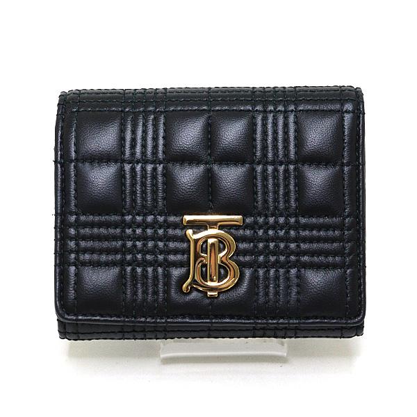 Burberry バーバリー 三つ折り財布 8049280 コンパクト ウォレット ブラック 黒 レザー Sランク【中古】