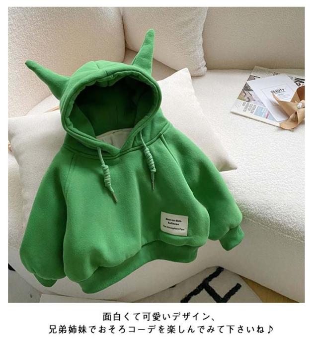 キッズ服 長袖 フード付き プルオーバー 耳付き トレーナー 男の子 無地 裏起毛 子供 パーカー トップス 子供服 面白い 女の子 秋冬 ゆったり キッズ かわいい 兄弟 兄妹 子供 萌え可愛い 韓国風 韓国ファッション トップス トップス