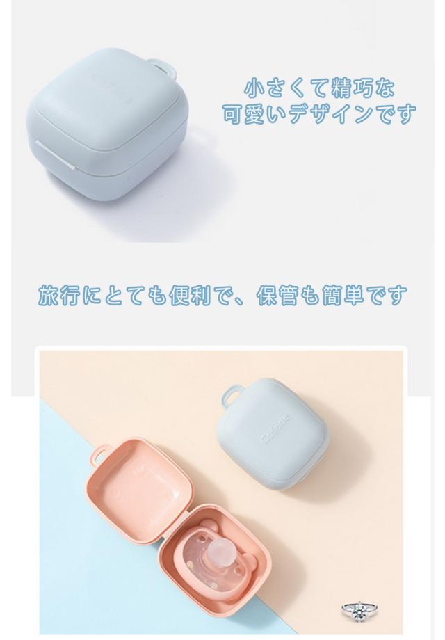 | ベビーおしゃぶり収納ケース 高品質の素材で作られており、実用的で耐久性があります。 赤ちゃんのおしゃぶりは清潔な環境に保管してください。 小さくて精巧な可愛いデザインです。 旅行にとても便利で、保管も簡単です ケースはベビーカーやバッグに取り付けられるので持ち運びの際も便利です | |