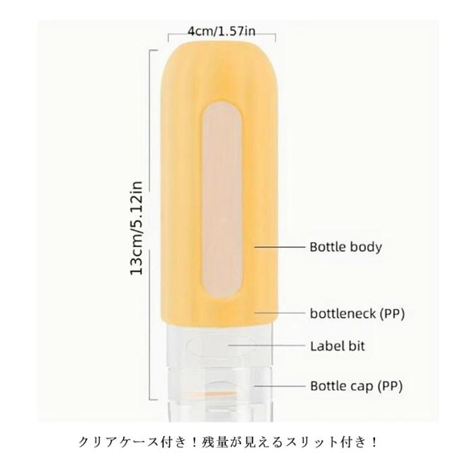 | 詰め替えボトル4個セット。 クリアケース付き!残量が見えるスリット付き! 大容量90ml!機内持ち込みOK! 注ぎ口が広くて補充しやすい。 | |