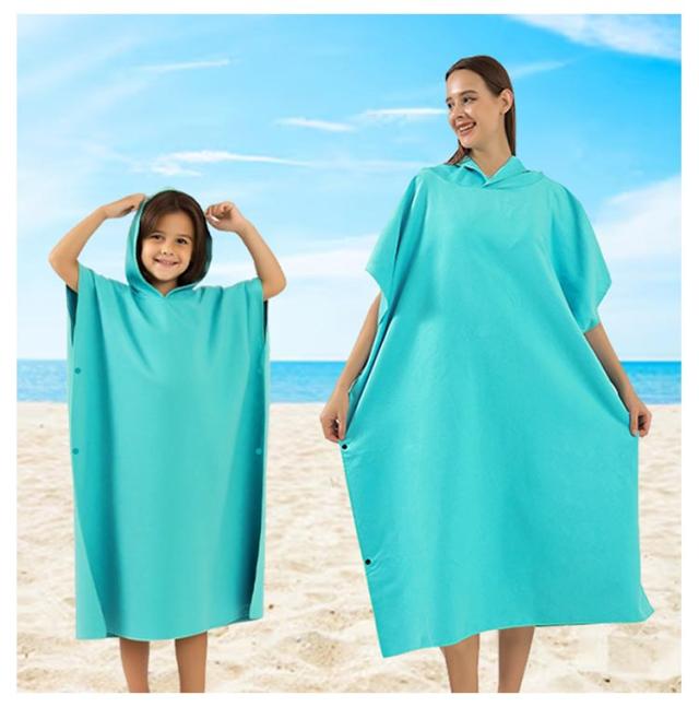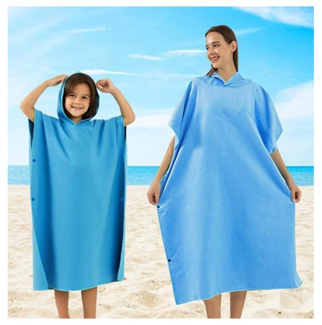 | パっと着て、サッと動けるバスポンチョ 肌に着いた水分をしっかりと吸水 サーフィン・海水浴・プールなど、ウォーターアクティビティにオススメ! | |