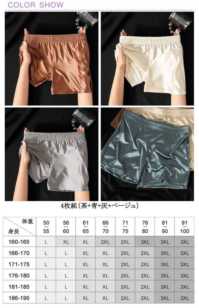 トランクス 冷感 インナー メンズ ボクサーパンツ シルク調 下着 夏用 メンズ下着 アイスシルク 光沢 ツルツル ゆったり 柔らかい 4枚セット ひんやり 涼しい 通気 速乾 シンプル ボクサーパンツ パンツ 大きいサイズ 父の日 プレゼント
