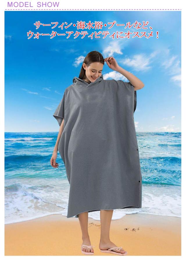 お着替え バスポンチョ サーフポンチョ 吸水 バスポンチョ メンズ レディース 速乾 タオルポンチョ サーフィン ポンチョ マイクロファイバー 透けない 薄手 バスポンチョ 送料無料