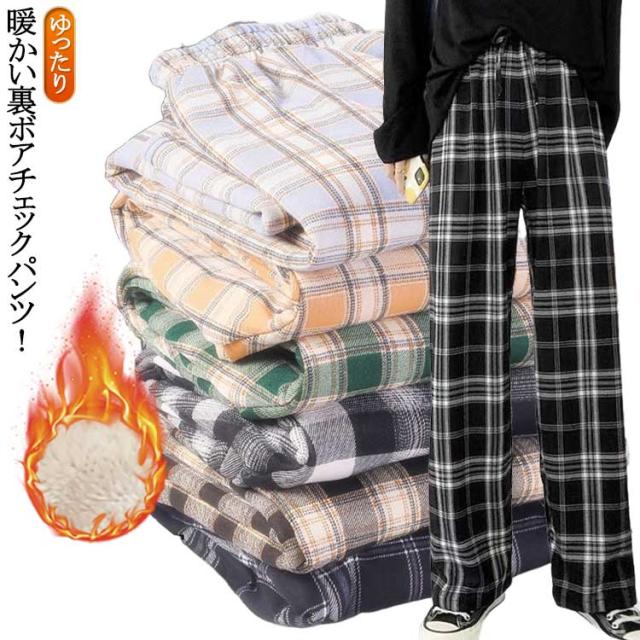 | 暖かい裏ボアチェックパンツ! さらっとすっきり着られる素材の為、素肌に着ても心地良いです。 パンツは、着脱便利なウエストゴム仕様。ストレスフリーな着心地を実現。 普段使いはもちろん、上品な見た目なので、家の近所のスーパーやコンビニに出かけることもできます。 | |