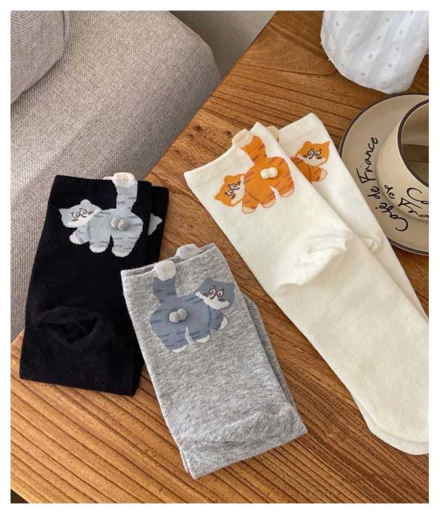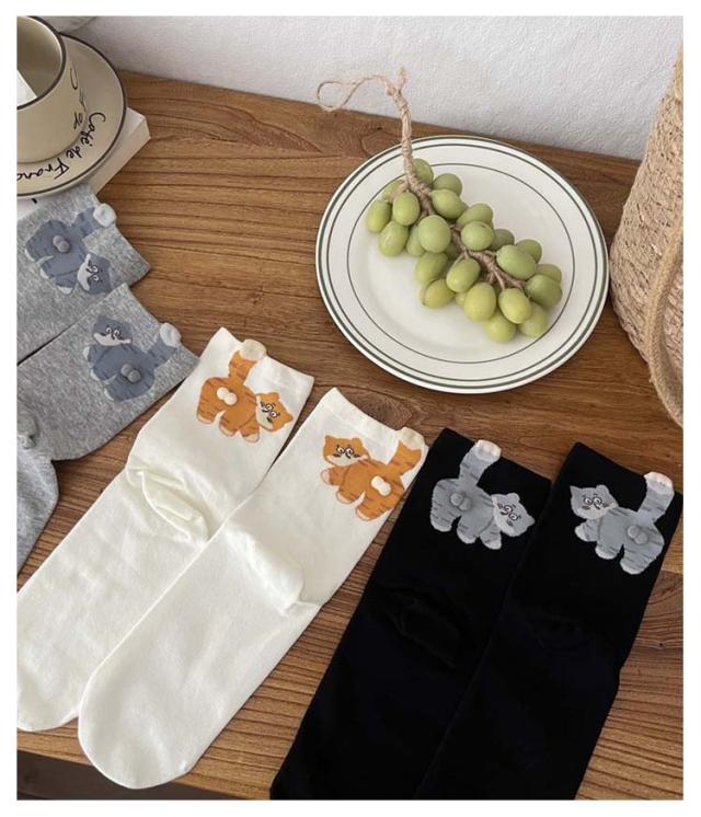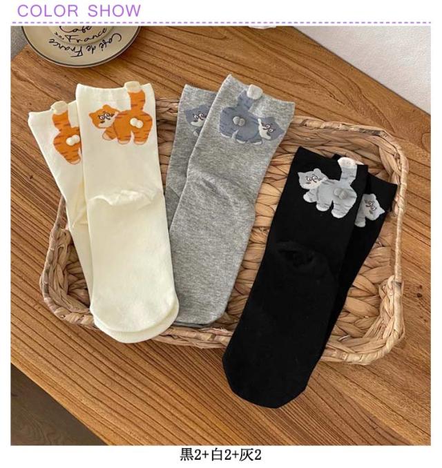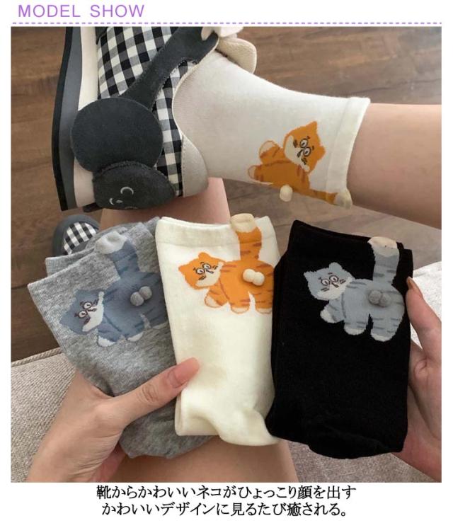 | 3色入り、6足組 ひょっこり可愛い にゃんこソックス 靴からかわいいネコがひょっこり顔を出すかわいいデザインに見るたび癒される。 | |