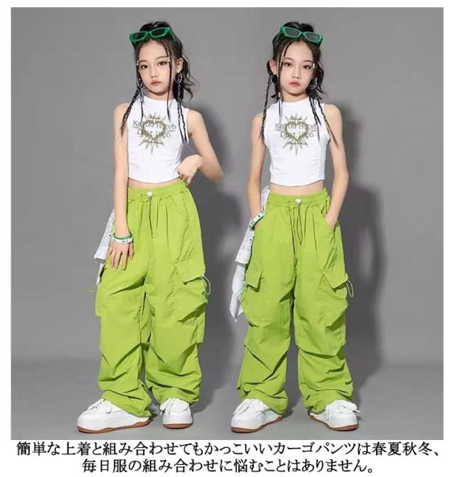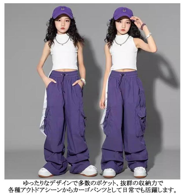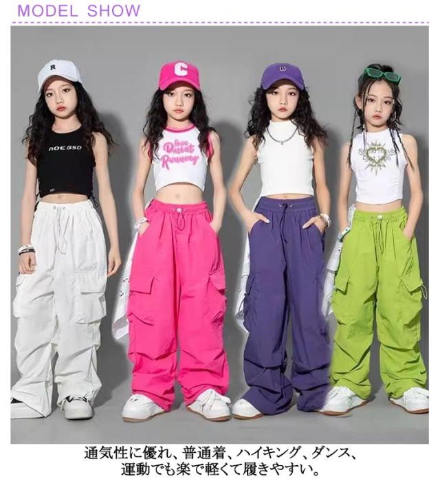 ダンス衣装 キッズ ウエストゴム 子供服 おしゃれ 運動着 ヒップホップ キッズ ダンスウェア ジャズ ダンスパンツ ロング丈 舞台服 練習着 ジュニア 韓国風 ズボン ロングパンツ 女の子 男の子 ワイドパンツ カーゴパンツ カジュアル 無地 ゆったり ガールズ