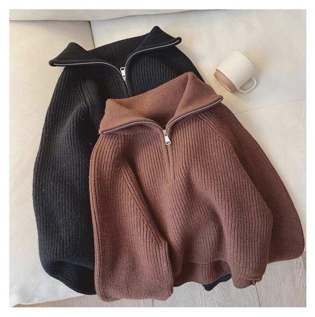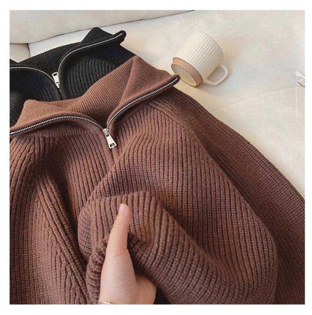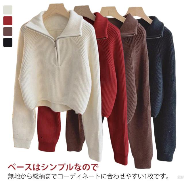 ファスナー付き ニット レディース きれいめ 冬 かわいい 長袖 春秋冬 プルオーバー トップス 重ね着 tシャツ 春 ルームウェア 冬物 冬服 リブ 体型カバー 秋 セーター ゆったり ふんわり 可愛い シンプル 無地 おしゃれ セーター カジュアル アウトドア 普段着 通勤