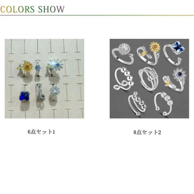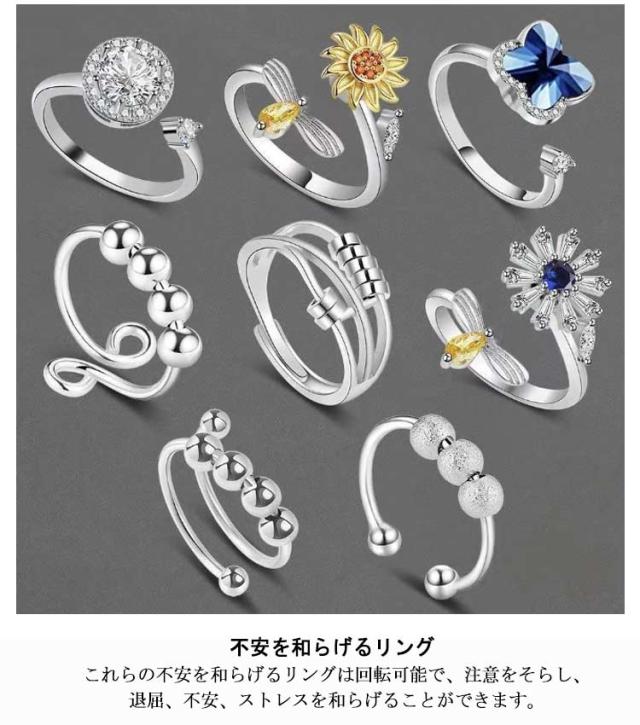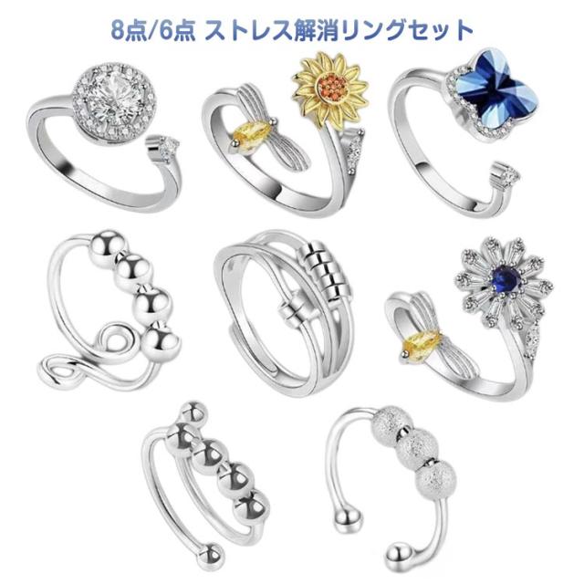 8個セット 6個セット ビーズ付き 8個セット オープンセット ストレス解消リング 重ね付け可能リング ストレス解消 不安を和らげるリング 調節可能 回転 可動ランナー 不安解消 リング 不安スピリチュアルズ 調節可能な圧力調整リング レディース ストレス解消リング